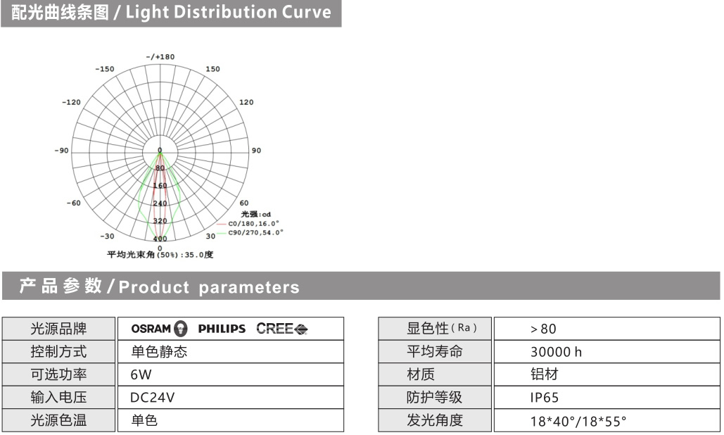 配光: 1、透鏡采用日本帝人光學(xué)級PC原料,高精度的模具加工工藝,光斑均勻度>0.92 ,眩光值UGR<8 ,光斑完美,透光率同比高10%以上。