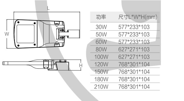 壓鑄鋁殼體,出光面為PC+玻璃;電氣箱上開蓋,免工具開合及安裝,有斷路器;安裝套筒直徑可選,角度可調(diào)節(jié)包括豎裝;可選配NEMA等控制器件;可選配SPD;有防墜鏈;