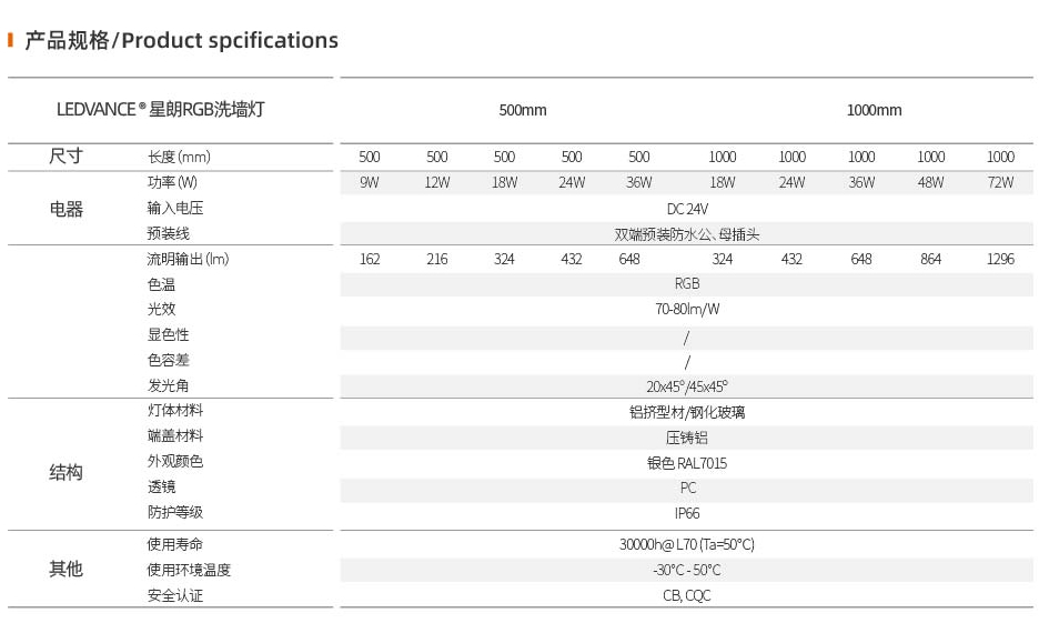 ●預(yù)裝IP66公插頭和母插頭,安裝方便