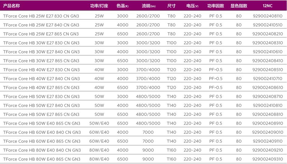 ●多種瓦數(shù)、流明和色溫選擇,滿足不同應用空間與亮度的需求