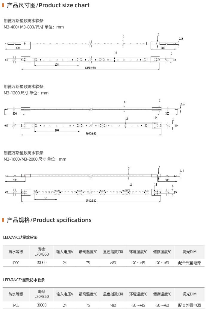 ●星致防水軟條,采用高品質(zhì)硅膠材料, IP65防水