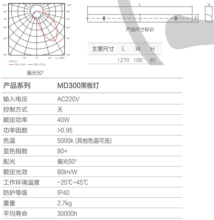●防眩光格柵,整個燈具亮度分布均勻,柔和,燈具效率高。