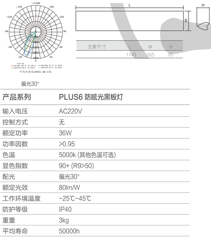 ●專業(yè)配光設(shè)計,滿足黑板面的維持平均照度及均勻度;