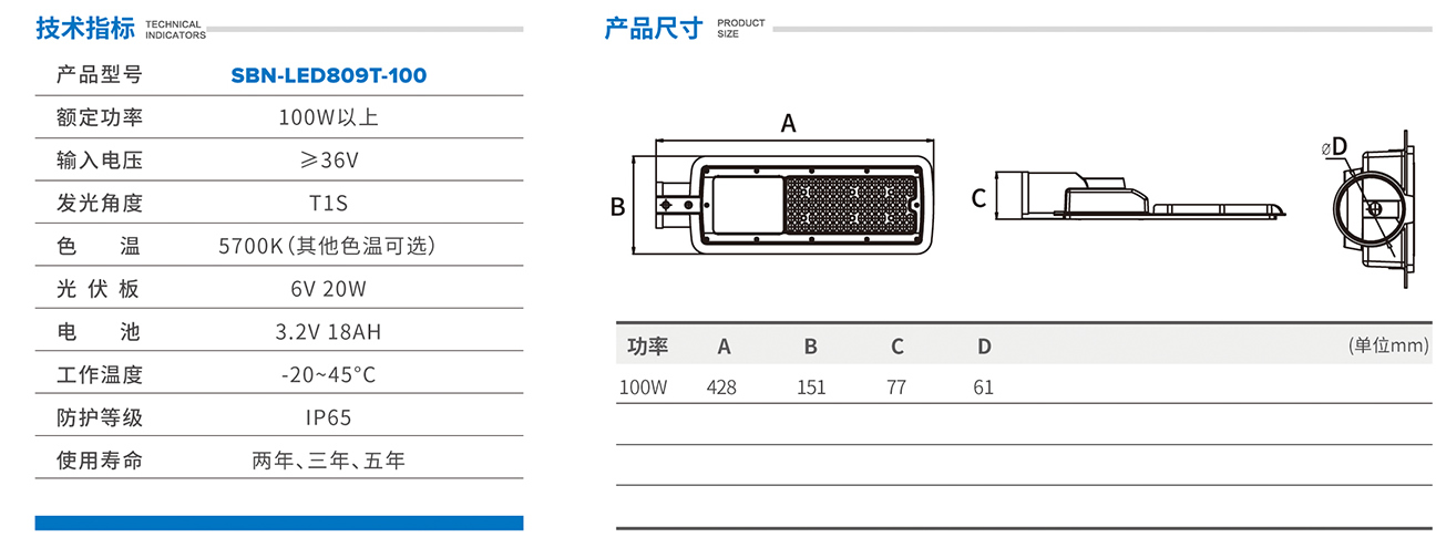 太陽(yáng)能路燈系列 SBN-LED809T-100