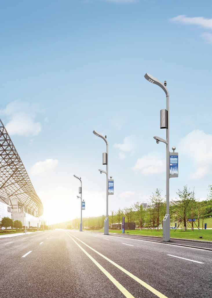 ●光訊智慧路燈外觀具有現(xiàn)代城市=風(fēng)格,將城市管理訊息通過(guò)照明燈桿進(jìn)行整合。