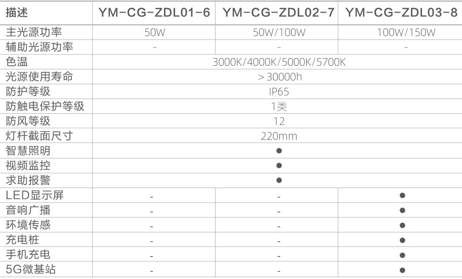 ●使用LED光源,防眩光處理; 壓鑄鋁燈體;高度自由調(diào)節(jié)6m、7m、8m; 功能擴(kuò)展:監(jiān)控、裝飾燈帶、廣告屏、音箱、充電樁、安全報(bào)警系統(tǒng),自由選配;燈桿管徑220mm;外部落實(shí)均為不銹鋼材質(zhì); .
