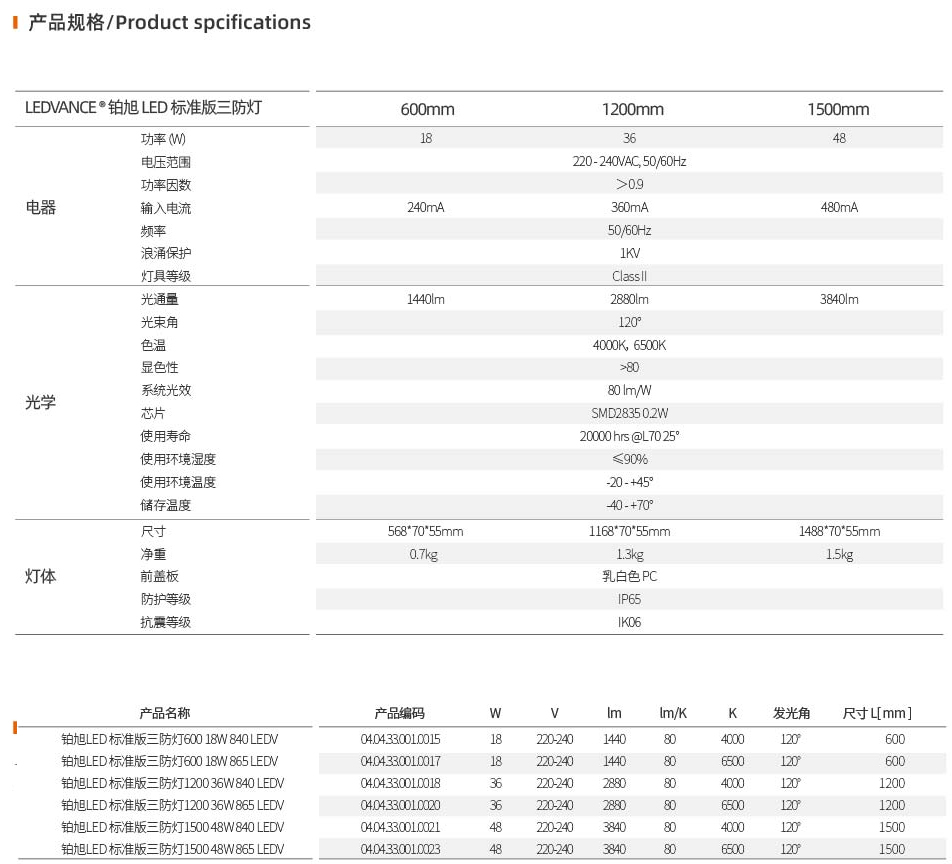 ●標(biāo)準(zhǔn)色溫: 4000K / 5800K/6500K