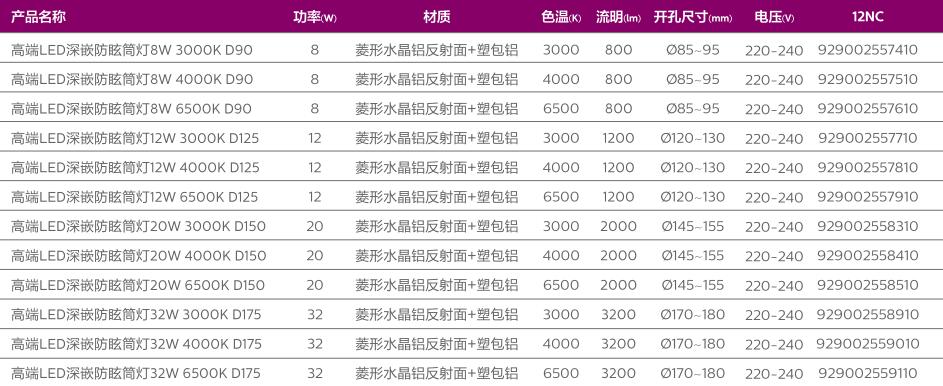 ●產(chǎn)品系列完整,具有多種流明和尺寸可選