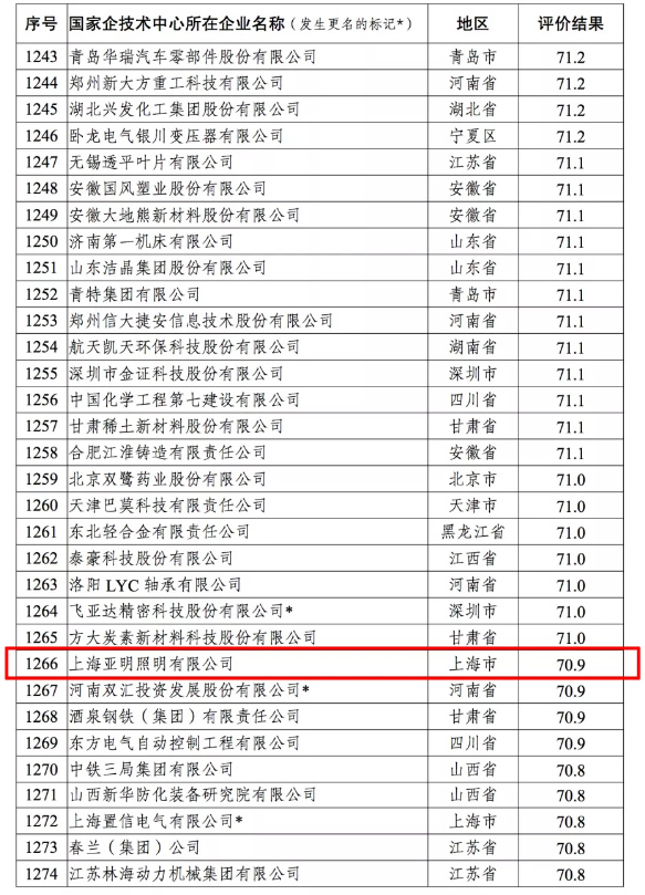 2022年2月15日,國(guó)家發(fā)展和改革委會(huì)辦公廳發(fā)布了“關(guān)于印發(fā)國(guó)家企業(yè)技術(shù)中心2021年評(píng)價(jià)結(jié)果的通知”(發(fā)改辦高技〔2022〕68號(hào)),公司下屬子公司上海亞明成功通過(guò)了國(guó)家企業(yè)技術(shù)中心復(fù)評(píng)。