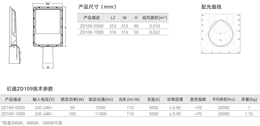 ●ZD109系列LED路燈燈具,使用高等級(jí)LED芯片,光效高,顯色性好;