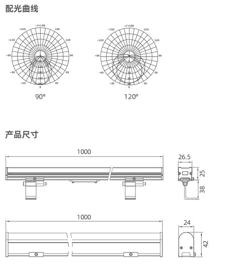 ●燈體采用高導(dǎo)熱鋁擠型材,端蓋采用壓鑄鋁,4mm厚高透光率鋼化玻璃,二次光學(xué)PMMA透境;