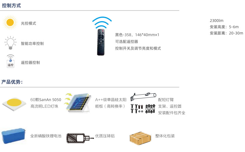 產(chǎn)品無需輔線和市電,安裝方便,節(jié)能環(huán)保,壽命長。